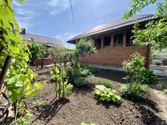Кирпичный дом 1987 года постройки. На участке 9,28 соток есть недостроенный большой гараж, навес, хозстроения, двор забетонирован, огород ухоженный.