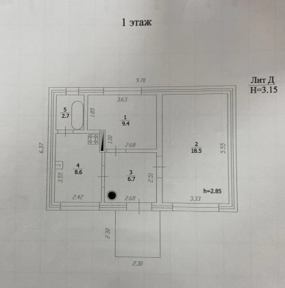 Есть скважина 28м, свет 3 фазы, газ, вода(центральная) и септик. В доме две изолированные комнаты 18,5 кв и 9,4 кв, кухня 8,6 кв и санузел. Вся мебель остается.