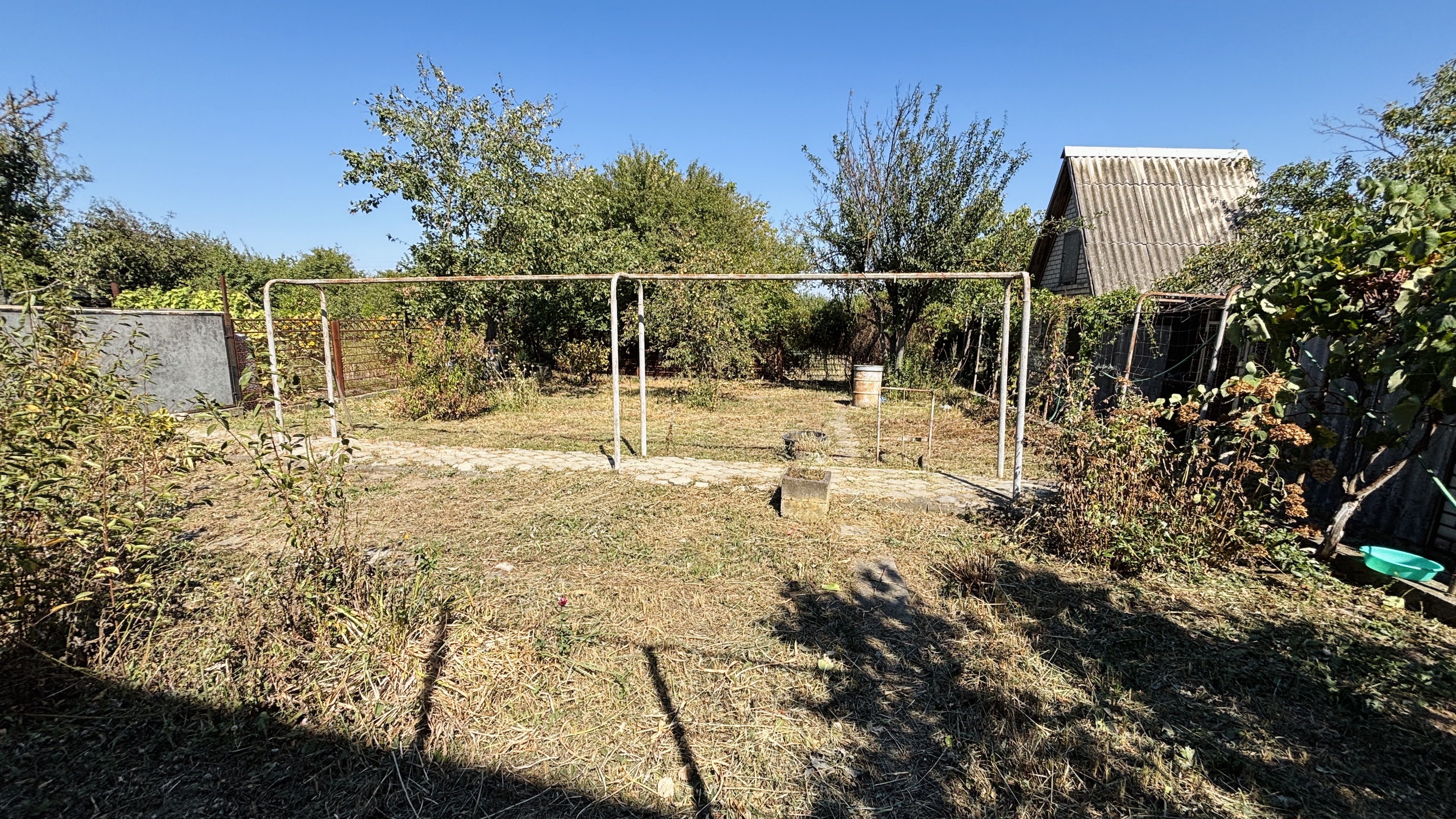 - Участок не пустой - растут плодовые деревья и виноград, что дает и тень, и свои фрукты