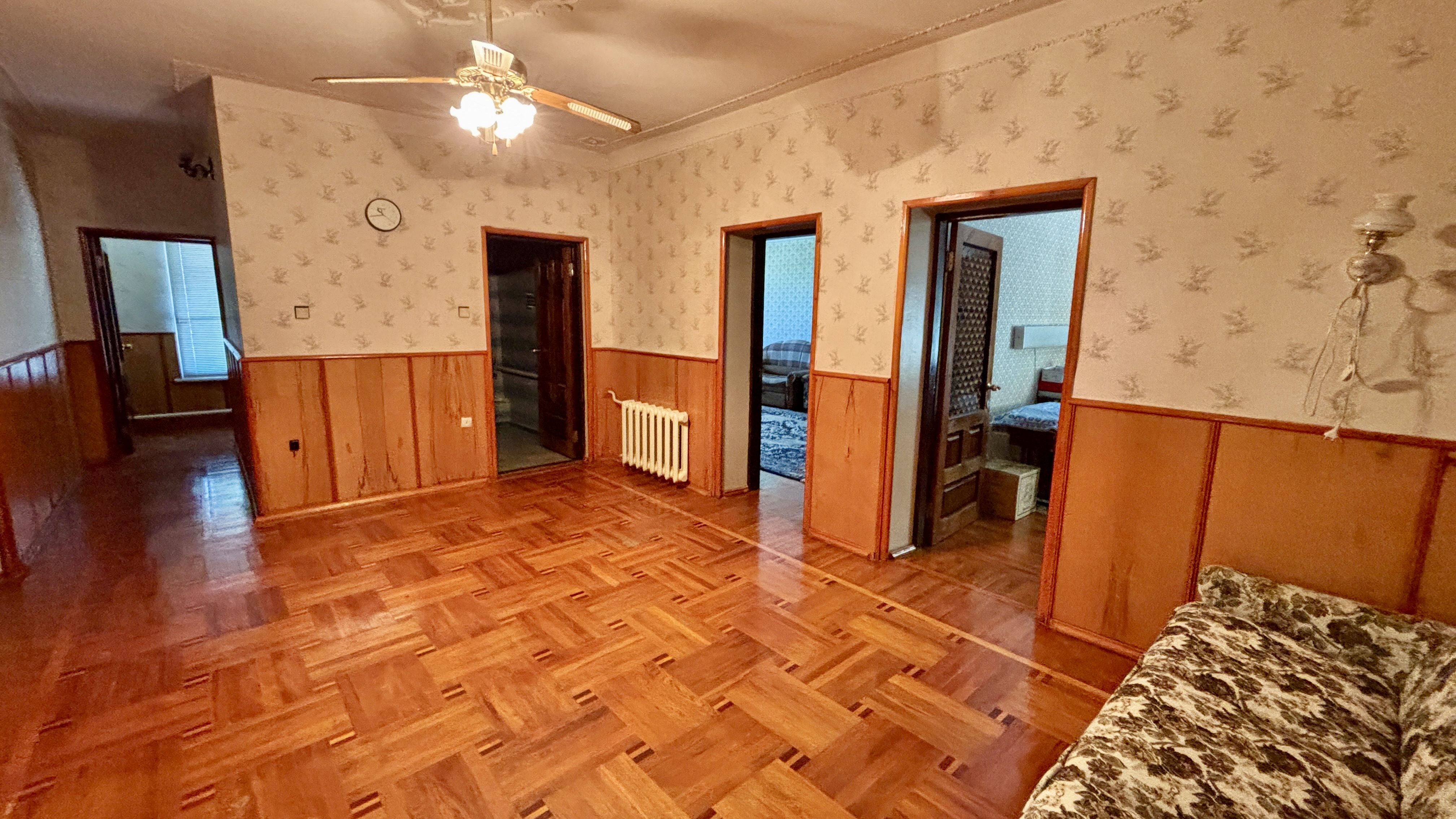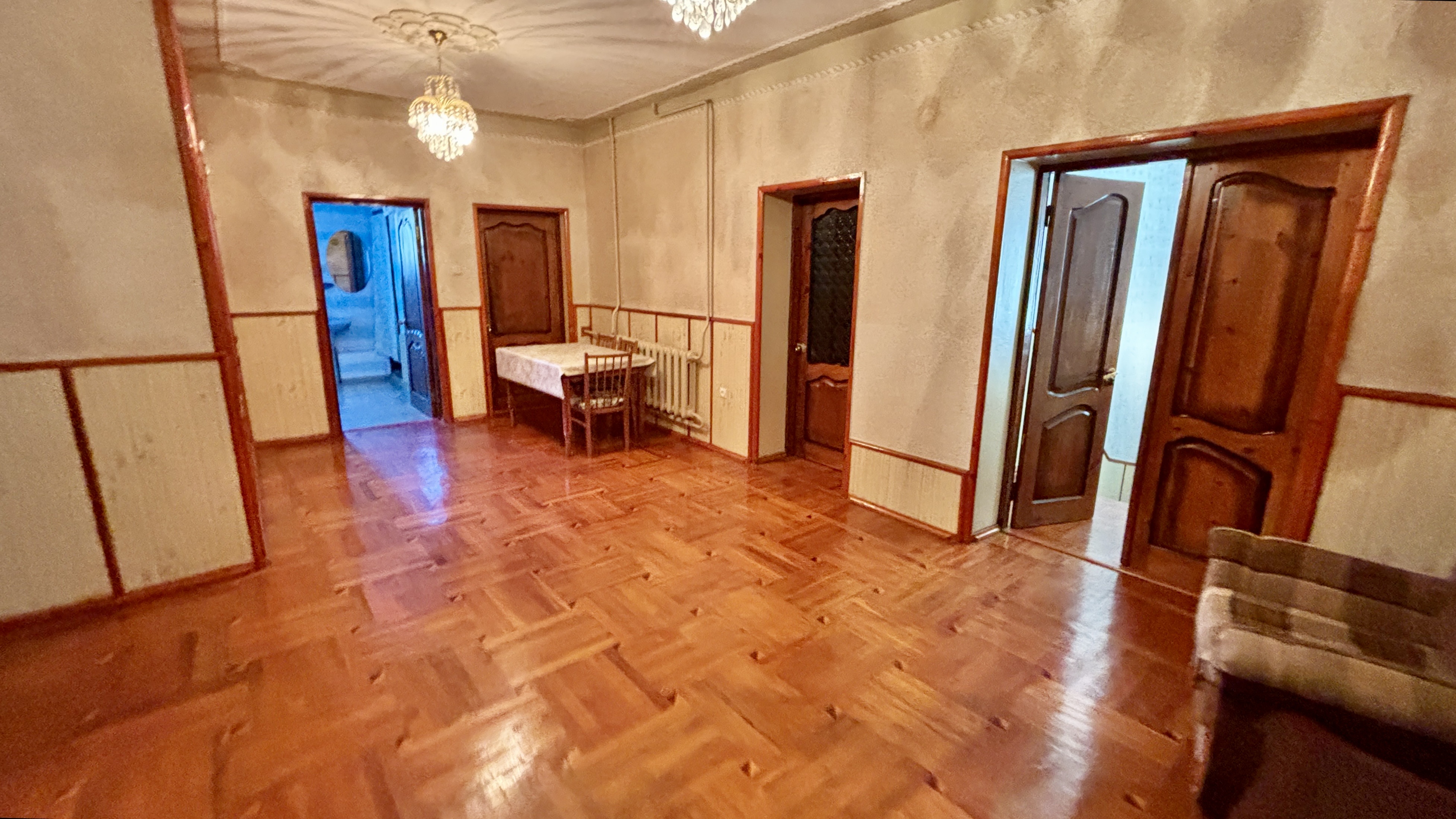 - Планировка: 8 жилых комнат, 2 кухни, 2 ванные комнаты, несколько кладовых помещений.